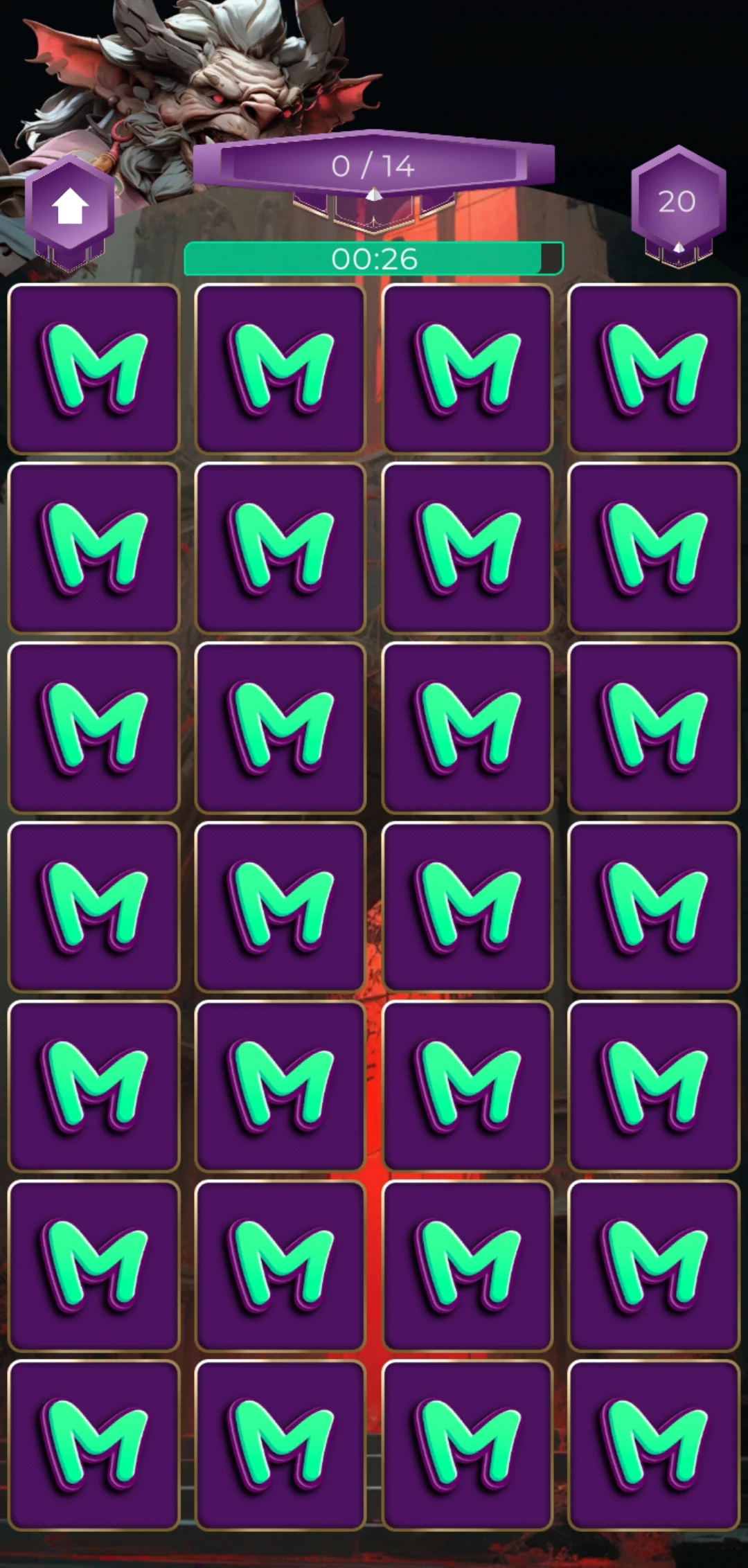 Sharpen your memory skills as you match pairs of mythic creatures. Strategize and uncover the cards swiftly to progress through levels and overcome challenges.